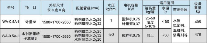 3. 计量装置及投加方式:JY系列中有两种:(1)是采用计量泵投加。(2)用水射器投加,转子流量计计量。如泵前投加,水射器可以不用,水射器需要压投入在2kg/cm